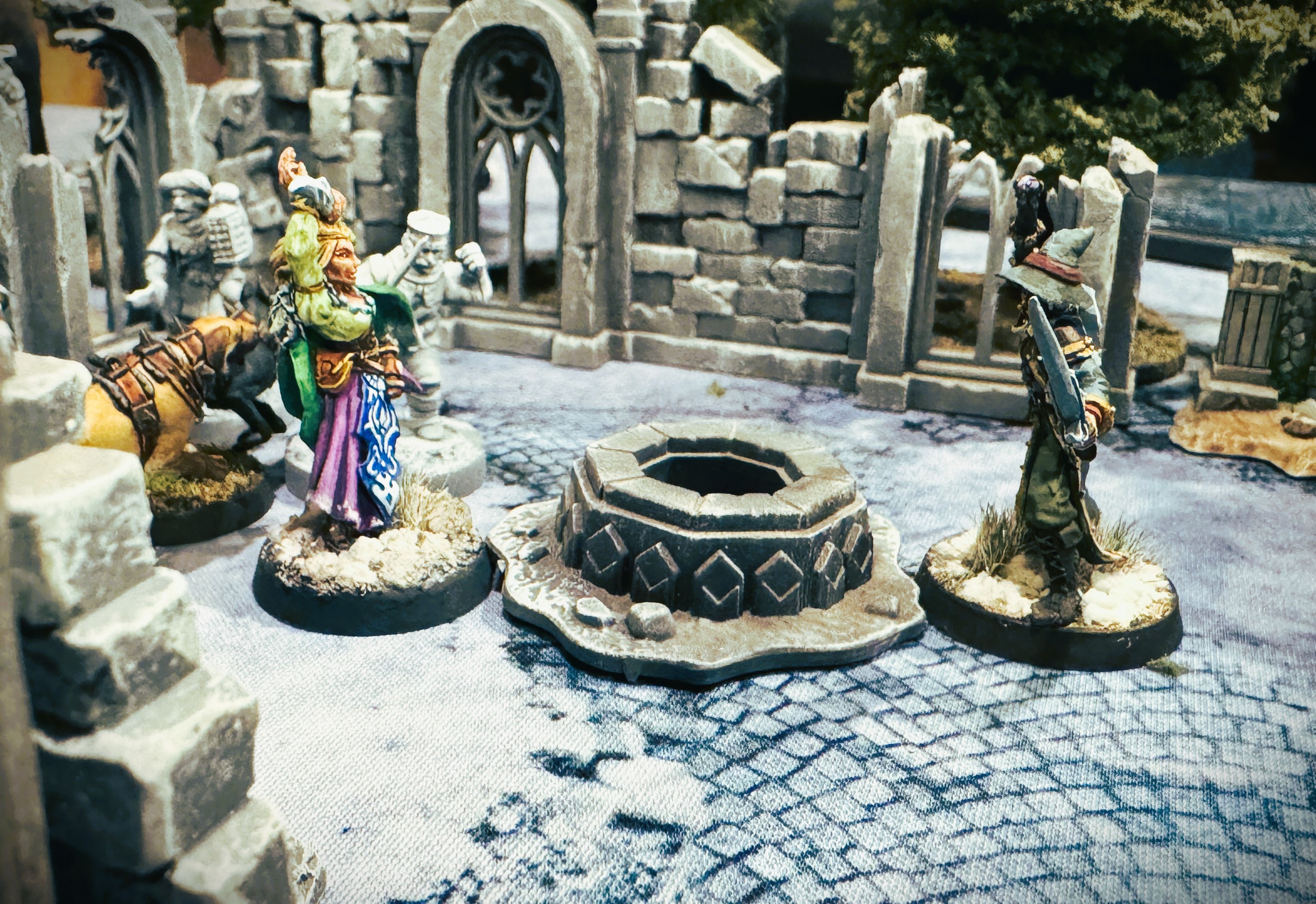 The wizard Nikodemus surveyed the snow covered ruins. Somewhere in that mess was the well, and he intended to drink from it....movement caught his eye, there a 100 yards away. Another wizard with a warband no doubt.